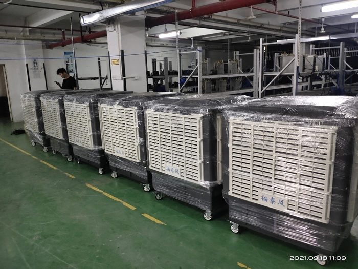 福泰節(jié)能環(huán)保空調(diào)是利用水蒸發(fā)吸熱的原理,可不用制冷劑和壓縮機(jī)就可以降溫的節(jié)能環(huán)保設(shè)備,因此它深受大型工廠的喜愛。它通過把廠房的熱空氣抽出,同時降溫除塵外界進(jìn)來的空氣,再作為冷空氣吹向室內(nèi)。一般來說,它可以做到短時間降溫4-10度的效果,通過風(fēng)機(jī)往室內(nèi)送風(fēng),使機(jī)內(nèi)產(chǎn)生負(fù)壓,室外的空氣流經(jīng)浸水的濕簾后空氣與水份充分接觸同時吸收空氣中的顯熱,從而達(dá)到降溫、換氣、除塵、增加鮮風(fēng)的目的,特別適用于高溫及人群密集場所。